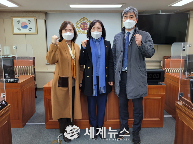 ▲ 서울시의회 이영실(가운데) 보건복지위원장이 김연은(오른쪽) 신임 서울시사회복지관협회 회장과 협회 역할을 중점으로 논의한 뒤, 기념촬영을 하고 있다. |