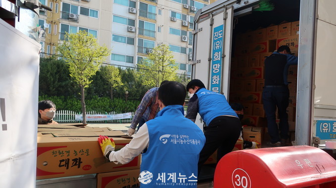 [세계뉴스 조홍식 기자] 서울시농수산식품공사(사장 김경호)는 최근 가격 하락으로 어려움을 겪고 있는 ‘대파’ 생산농가의 고통을 분담하고, 소비 촉진을 통한 수급 안정을 위해 (사)희망나눔마켓과 함께 대파를 구매하여 서울시내 어려운 이웃에게 기부했다.