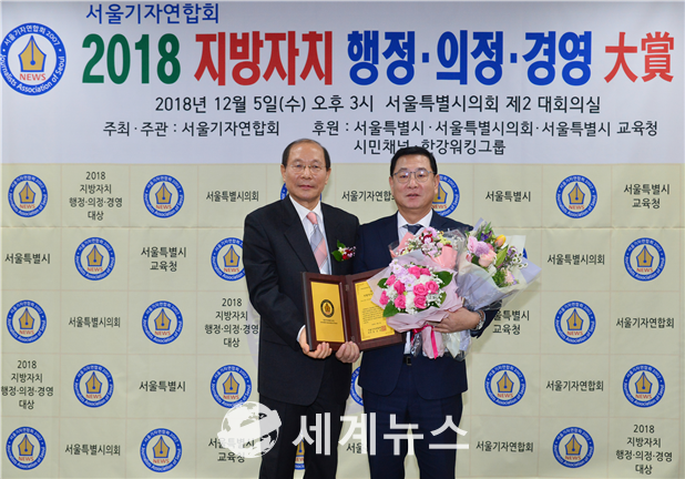 [세계뉴스] 전승원 기자 = 서울특별시의회 기획경제위원회 이광호 의원(더불어민주당·비례대표)은 지난 5일 서울특별시의회 의원회관 제2대회의실에서 열린 ‘2018 지방자치 행정·의정·경영 大賞’ 시상식에서 의정大賞을 수상하는 영예를 안았다.