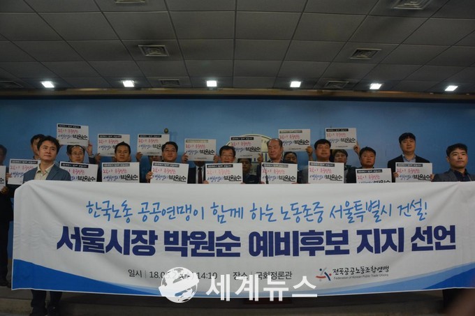 공공연맹, "박원순 예비후보와 '노동존중 서울시' 위해 적극적인 지원에 나설 것"