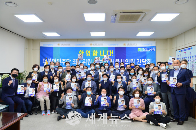 ▲ 18일 오후 서울시의회 더불어민주당을 방문한 노웅래 의원(서울 마포갑)과 간담회를 마치고 단체 기념촬영을 하고 있는 서울시의회 더불어민주당 소속 의원들. |