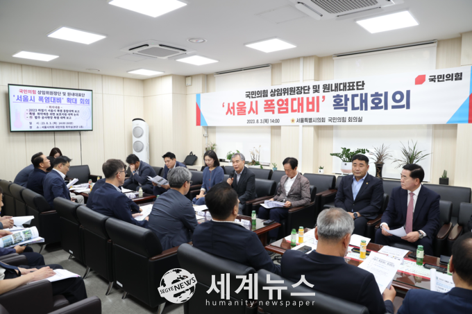 [세계뉴스 윤소라 기자] 서울시의회 국민의힘(대표의원 최호정)은 3일 오후 2시 서울시의회 국민의힘 회의실에서 국민의힘 상임위원장단, 원내대표단 확대회의를 개최하고 여름철 폭염 대비 서울시 종합대책을 점검했다.