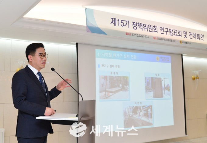 [세계뉴스] 차성민 기자 = 서울특별시의회 제15기 정책위원회 위원으로 활동 중인 김종무 의원(더불어민주당, 강동2)은 22일 개최된 연구발표회에서 ‘지하철역 환기구 개선방안 도출’을 주제로 한 정책연구결과를 발표했다.