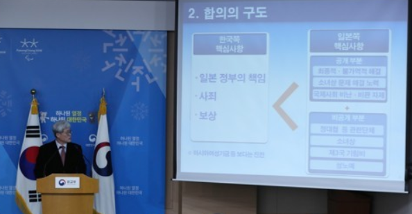 이어 "2015년 11월2일 한일 정상회담에서 양국 정상은 한일 국교 정상화 50주년이라는 점을 감안, 가능한 한 빠른 시일 안에 위안부 문제를 타결하기로 의견을 모았다"며 "박근혜 대통령은 연내 타결에 강한 의욕을 보였다"고 밝혔다.