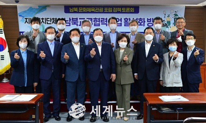 서울시의회는 24일 오후 보도자료를 내고 ‘서울시 남북 문화·체육·관광 교류 포럼’ 대표 권영희 의원의 주관으로 토론회를 진행한다고 밝혔다. 토론회에는 이민규 부연구위원(서울연구원), 강영식 회장(남북교류협력지원협회), 황방열 단장(서울시 남북교류협력추진단), 이성우 연구위원(경기연구원), 서울시의회에서 김정태 운영위원장, 유용, 장인홍, 김혜련, 김달호, 권순선, 임종국, 전병주, 이호대, 김태호, 이성배 의원 등이 참석했다.