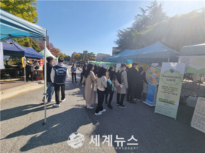 ▲ 공정무역에 참여하고 있는 건국대학교 학생들. |