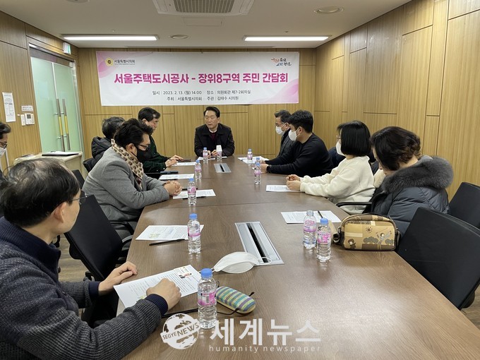 [세계뉴스 윤소라 기자] 서울시의회 주택공간위원회 김태수 부위원장(국민의힘, 성북구 제4선거구) 주관으로 서울주택도시공사와 장위8구역 주민 간 간담회가 13일 오후2시 서울시의회 의원회관에서 개최했다.