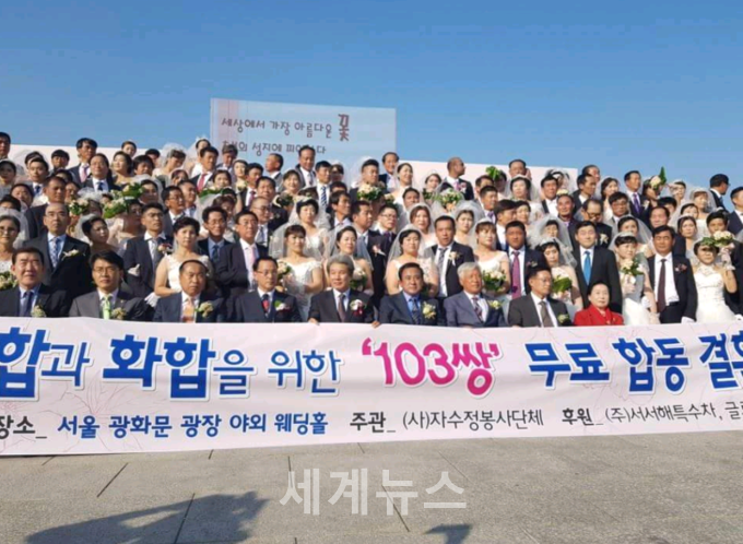 ▲ 17일 오후2시 서울 광화문 광장에서 '103쌍' 무료 합동 결혼식이 진행됐다. © 세계뉴스 |