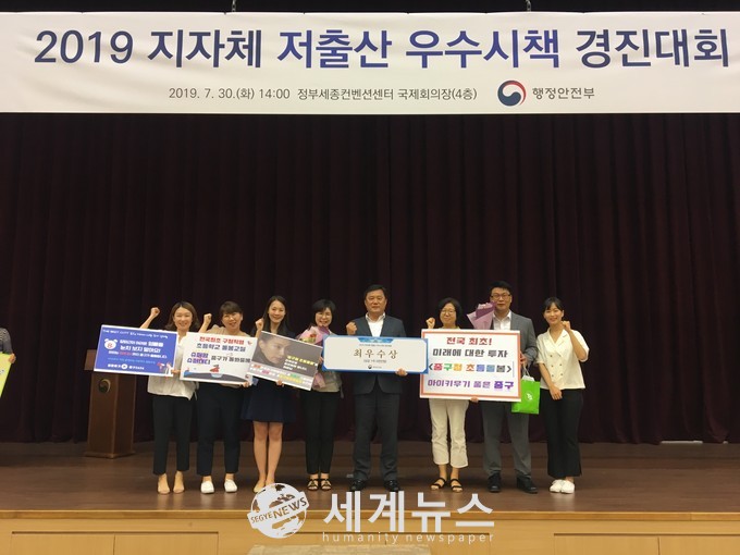 구는 행정안전부 주관으로 지난 달 30일 오후 세종시 정부세종컨벤션센터에서 열린 '2019년 지자체 저출산 우수시책 경진대회'에서 최고 영예인 최우수상을 수상했다. 구는 이번 수상으로 대통령 표창 수여 및 특별교부세 1억 5000만 원을 지원받게 됐다.