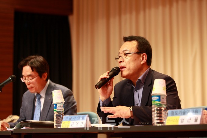 ▲ 29일 서울메트로 인재개발원 3층 다목적홀에서 열린 ‘서울지하철 안전경영 체제 구축 세미나’에서 신언근 예결위원장은 “매일 수백만명이 이용하는 서울시민의 지하철 이용안전 확보를 위한 사업에 예산의 우선투입이 필요하다”고 말했다. © 세계뉴스 |
