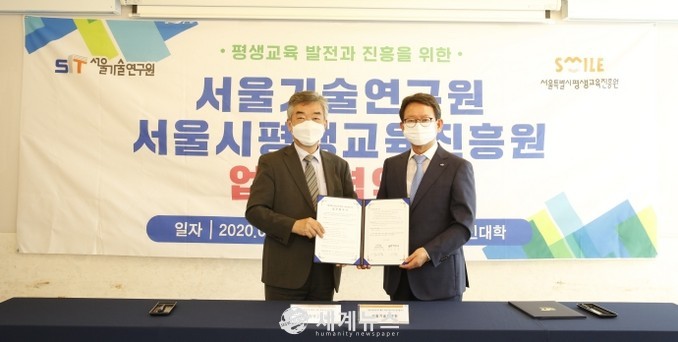 [세계뉴스 차성민 기자] 서울기술연구원(원장 고인석)은 서울시평생교육진흥원(원장 김주명)과 과학기술분야의 평생교육의 발전과 진흥을 위한 협력 네트워크를 구축을 위해 MOU를 체결했다고 9일 밝혔다.