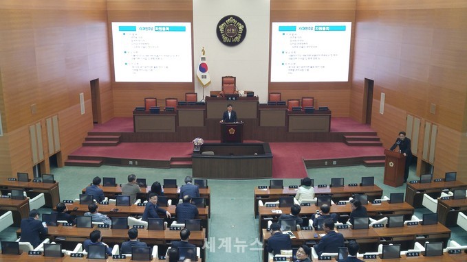 ▲ 서울시의회 더불어민주당은 4일 오후4시 의원총회를 소집하고 본회의장에서 제9대 후반기 대표의원에 김동욱 3선의원을 추인했다. © 세계뉴스 |