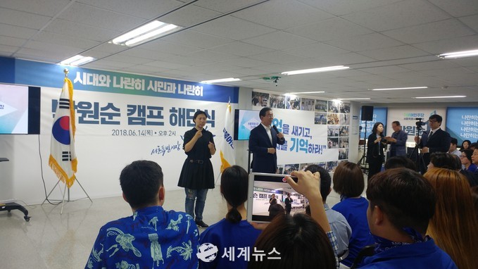 [세계뉴스] 전승원 기자 = 6.13전국지방선거에서 서울시장 3선에 성공한 박원순 서울시장이 안국동 선거캠프 해단식을 14일 오후 2시 가졌다.