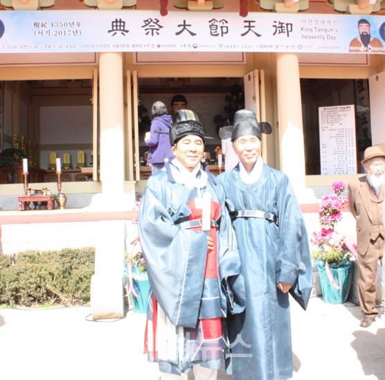 ▲ 서울시의회 오봉수 의원(왼쪽)은 15일 종로구 사직동 단군성전에서 열린 ‘어천절 대제전’에 아헌관으로 참여했다. © 세계뉴스 |