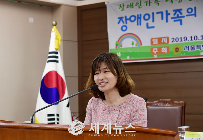 ▲ 지난 18일 오후 서울시의회 제1대회의실에서 열린 ‘장애인가족 역량강화 토론회’에서 김경우 서울시의원이 인사말을 하고 있다. |