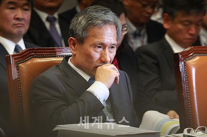 ▲ 김관진 국가안보실장이 23일 국회 운영위원회 국정감사에서 의원들의 질의 답변에 앞서 고심하고 있다. © 세계뉴스 |