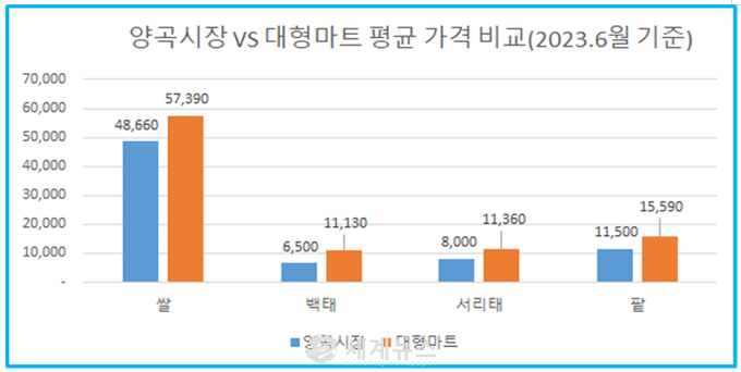 - 대형마트 대비 양곡시장에서 쌀의 경우 평균 19%, 잡곡의 경우 평균 35% 저렴하게 판매