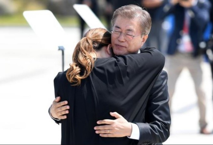 ▲ 문재인 대통령이 18일 오전 광주 북구 국립 5.18 민주묘지에서 열린 ‘제37주년 5·18 민주화운동 기념식’에서 5.18 유가족인 김소형씨를 안아주며 위로하고 있다. © 세계뉴스 |