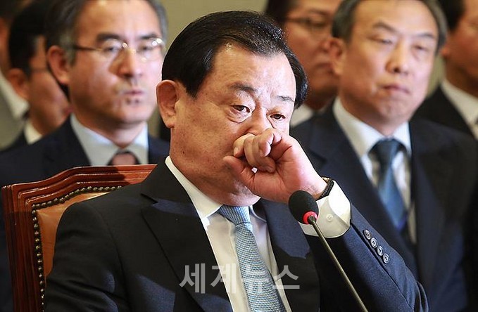 ▲ 이병기 청와대 비서실장은 23일 국정감사에서 "역사교과서 국정화에 반발해 '집필 거부'를 선언한 교수 대부분이 실제로는 교과서 집필한적이 없다"며 "어떻게 자기 후손을 위한 교과서를 쓰는데 왜 동참해서 바른 교과서를 만드는 데 신경을 안 쓰느냐"고 반문했다. © 세계뉴스 |