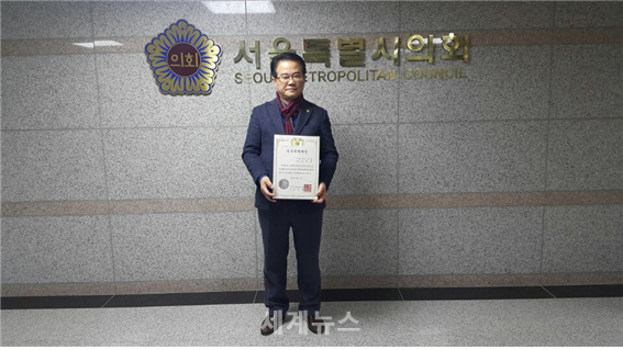 ▲ 유찬종 서울시의원(더불어민주당, 종로2)이 ‘제5회 전국시도의장협의회 의정대상’을 수상했다.© 세계뉴스 |