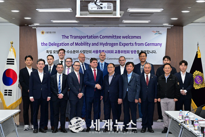 [세계뉴스 윤소라 기자] 서울특별시의회 교통위원회(위원장 박중화, 국민의힘, 성동1)는 지난 26일 오후 1시, 서울시의회 의원회관 별관 제2대회의실에서 서울시의회를 예방한 독일 연방 교통디지털인프라부·독일 국립수소연료전지기술원 사절단 등과 함께 지속 가능한 친환경 모빌리티 관련 정책 간담회를 성황리에 개최했다.