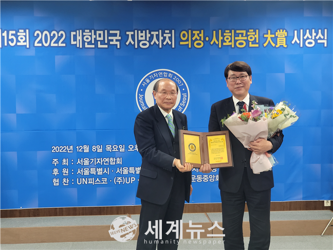 [세계뉴스 윤소라 기자] 서울특별시의회 기획경제위원회 김지향 의원(국민의힘·영등포구4)은 8일 서울특별시의회 제2대회의실에서 열린 ‘제15회 2022 대한민국 지방자치 의정대상’ 을 수상했다.