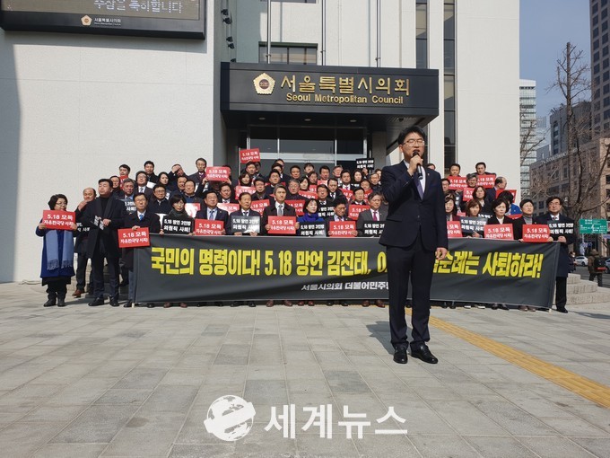 [세계뉴스] 정서영 기자 = 서울시의회 더불어민주당(김용석 대표의원,도봉1)은 오는 22일 오후 1시 서울시의회 본관 정문 앞에서 ‘자유한국당 5.18 망언 3인방 규탄대회 및 자진사퇴 촉구 거리 행진’을 진행한다.