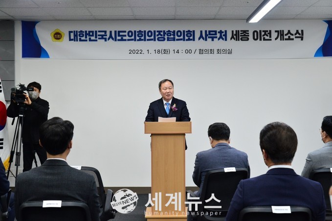 [세계뉴스 정서영 기자] 대한민국시도의회의장협의회(회장 김인호 서울특별시의회 의장) 세종 이전 개소식이 18일 협의회 사무처(세종파이낸스센터1차)에서 개최되었다.