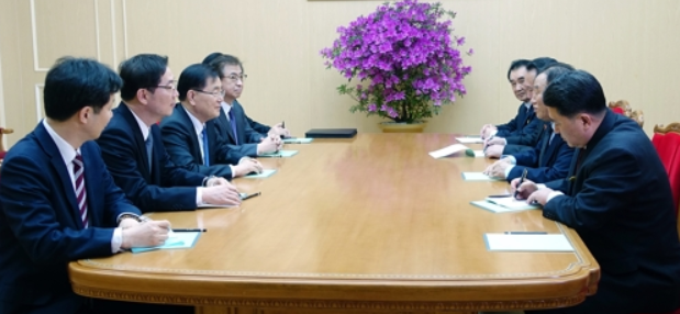 [세계뉴스] 탁병훈 기자 = 정의용 청와대 국가안보실장을 수석특사로 하는 대북 특사단이 5일 오후 특별기편으로 평양 에 도착, 숙소인 고방산 초대소에서 김영철 당 중앙위 부위원장 겸 통일전선부장과의 영접을 받고 방북 일정에 대해 협의에 들어갔다.