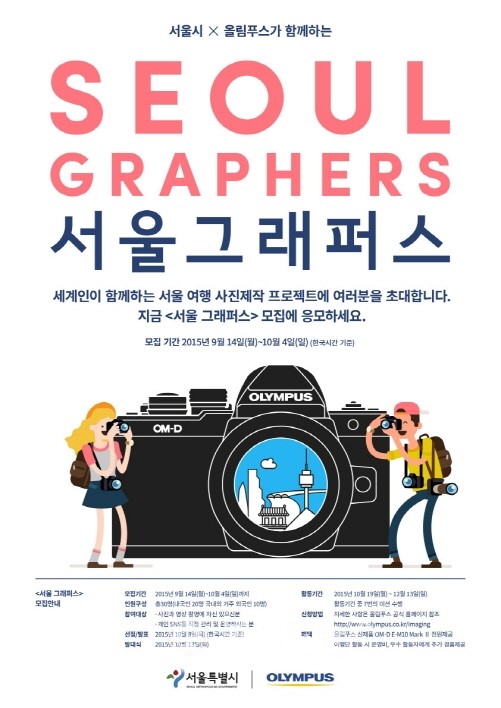 서울시는 ‘서울’을 알리기 위한 다방면의 노력 중 하나로, 카메라 전문업체인 ‘올림푸스 한국’과 함께 ‘서울관광 사진 제작 프로모션’을 진행하고 있다. 물론 시민들의 참여로 이루어지는 이색 프로모션이다. ‘서울 그래퍼스’라는 서울관광사진단을 모집하고 30명을 선발하여 운영하게 되는데, 사진과 영상 촬영에 재능 있는 내국인뿐만 아니라 외국인도 지원이 가능하다.