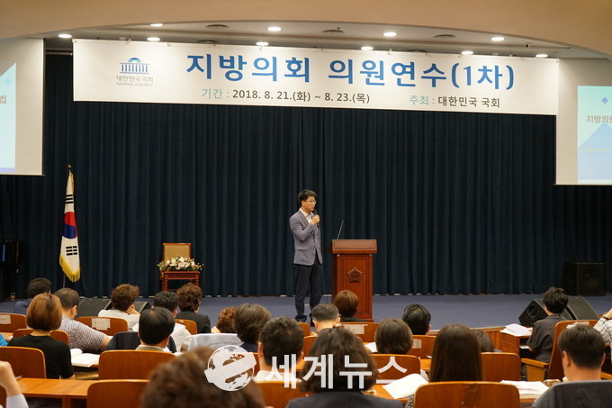[세계뉴스] 전승원 기자 = 서울시의회 더불어민주당 김용석 대표의원이 지난 22일 국회의정연수원이 주최한 2018년도 지방의회 의원연수에서 ‘지방의원, 의정활동 전략과 방법’ 의 주제로 강의를 펼쳤다.