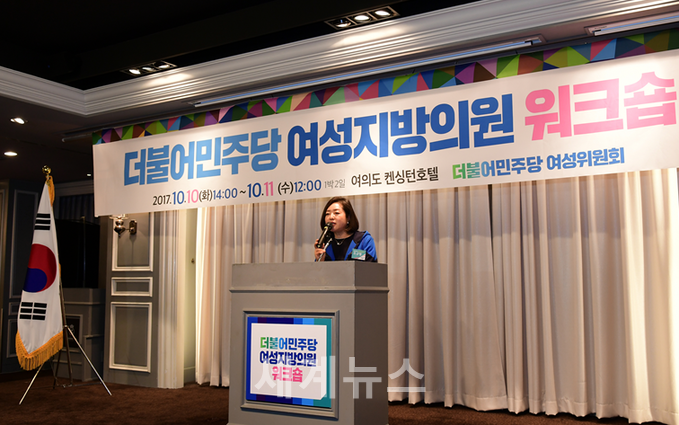 ▲ ‘더불어민주당 여성지방의원 워크숍’이 지난 10일 여의도 켄싱턴 호텔에서 열린 가운데 조규영 부의장(여성지방의원협의회 공동대표)이 축사를 하고 있다. © 세계뉴스 |