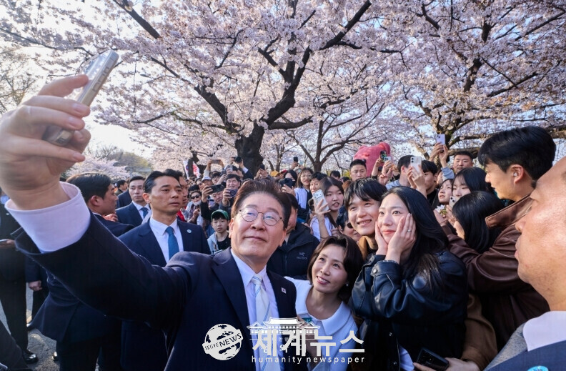 이 대통령 부부는 주말을 맞아 여의도 일대에서 시민들과 벚꽃을 즐기며 셀카를 찍는 등 소통 행보도 이어갔다.