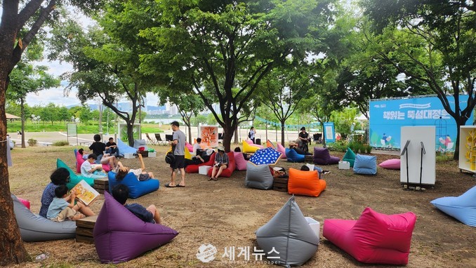 [세계뉴스 탁병훈 기자] 서울 광진구(구청장 김경호)가 매주 토, 일요일마다 뚝섬 한강공원에서 ‘책읽는 뚝섬대정원’ 야외도서관을 운영한다.