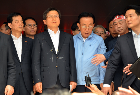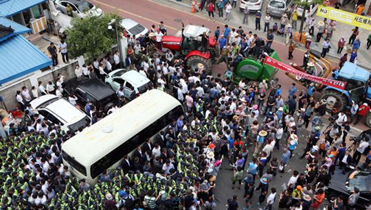 이날 성난 군민은 황 총리를 비롯한 정부 관계자를 둘러싸고 6시간 넘게 격렬한 대치전을 벌였다.