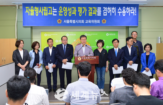 [세계뉴스] 정서영 기자 = 서울특별시의회 교육위원회(위원장 장인홍)는 10일 서울시의회 본관 1층 기자회견장에서 서울시교육청의 자사고 운영성과 평가와 관련된 기자회견을 열고 자사고가 운영성과 평가 결과를 겸허히 수용할 것을 강력히 촉구했다.