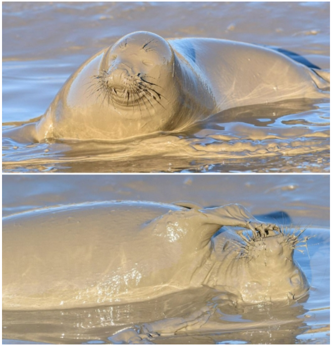 콕스는 “10~15분 동안 이 물범만 촬영하고 나서 다른 곳에 갔다가 30분이 지나서 다시 왔을 때도 물범은 진흙 목욕을 즐기고 있었다”고 전했다.