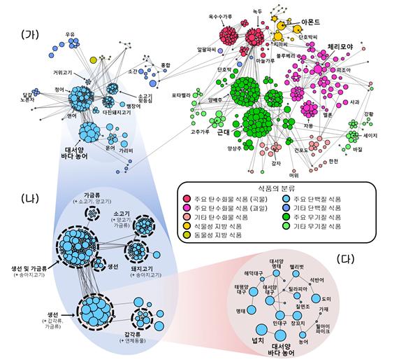 복잡계 물리학에서 쓰이는 네트워크 분석 기법을 적용한 결과, 식품 간의 영양 관계가 마치 사람들 사이의 사회연결망처럼 식품들 사이에서도 촘촘하고 질서 있게 발견되었고 이를 통해 식품 사이의 관계망을 체계적으로 정리할 수 있었다.