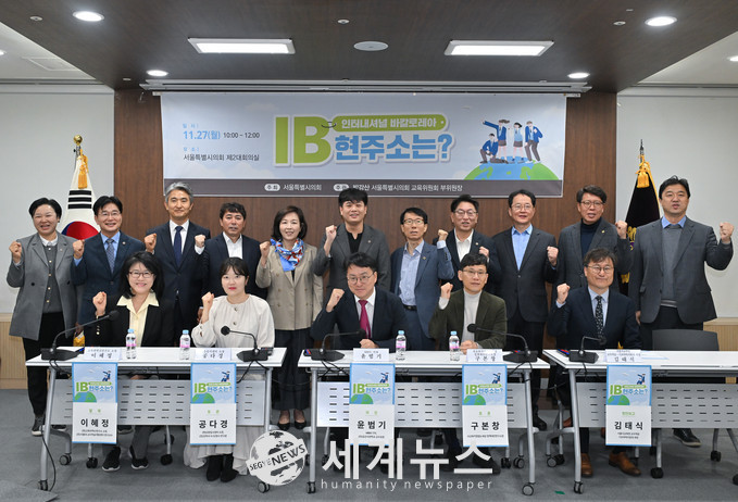 [세계뉴스 정서영 기자] 서울특별시의회 박강산 의원(더불어민주당·교육위원회 부위원장)은 27일 서울시의회 의원회관 제2대회의실에서 IB(인터내셔널 바칼로레아)를 주제로 교육 전문가 및 시민단체 패널과 ‘IB 현주소는?’ 토론회를 개최했다.