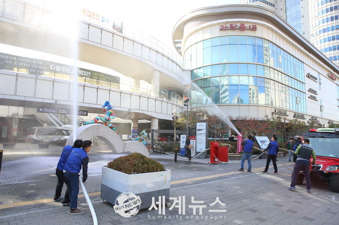 [세계뉴스 조홍식 기자] 서울시농수산식품공사(사장 김경호)는 4일 ‘안전점검의 날’ 행사를 맞이하여 공사와 송파소방서, 유통인(가락시장 법인·조합 포함) 100여명 합동으로 ‘2019년 가락시장 하반기 소방종합훈련’을 가락몰 1관과 2관 앞에서 실시했다.