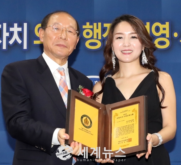 | ▲ 21일 오후 서울특별시의회 제2대회의실에서 서울기자연합회(회장 정상린)가 개최한 ‘2019 지방자치 의정·행정·경영·사회공헌부문 大賞’ 시상식에서 한국실용음악협회 이예영 회장(오른쪽)이 ‘사회공헌’을 수상했다. |