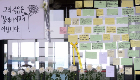 ▲ 구의역 스크린도어 사고로 안타깝게 목숨을 잃은 김군에게 조문 스티커가 붙어있다. © 세계뉴스 |