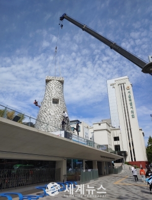 [세계뉴스 전승원 기자] 서울시가 13일 서울 중구 서울시청 맞은편 서울 도시건축전시관 옥상에 세웠던 첨성대 조형물을 철거했다. 이 조형물은 6500여만 원의 예산을 들여 설치되었지만, 주변 경관을 해친다는 여론에 밀려 설치한 지 4개월여 만이다.