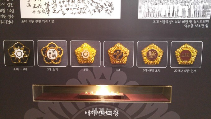 서울시의회는 이러한 역사적 사건을 고스란히 품고 있는 시의회청사를 시민들과 공유함으로써, 우리나라 민주주의와 의회정치 발전사를 되돌아보고자 본회의장이 있는 1~2층 계단과 복도 유휴공간을 활용하여 전시시설을 조성했다.