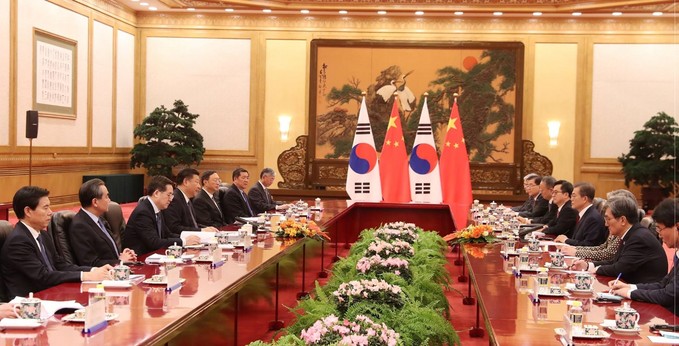 이날 국빈 방중 이틀째를 맞은 문 대통령은 시 주석이 주재하는 공식 환영식에 참석한 뒤 바로 한중 확대 정상회담에 돌입했다.