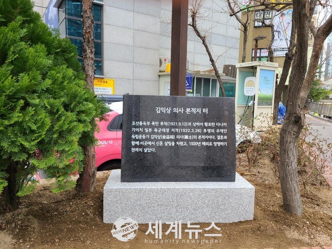표지석의 주인인 김익상 의사는 의열단 출신으로 조선총독부 폭파(1921년)로 일제의 문화통치의 허황됨을 알리고, 재차 상해 황포탄으로 건너가 일본 육군대장 다나카 기이치를 저격(1922년)하는 등 의열투쟁에 앞장섰던 독립운동가이다.