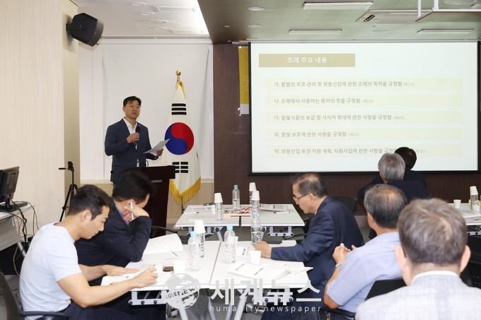 첫 번째 순서로 발제를 맡은 도쿄대 Kohsaka Ryo교수는 2013년 ‘양봉진흥법’ 시행 이후 일본의 양봉산업 현황과 양봉산업 활성화 및 개선 프로젝트들을 소개했으며, 정준호의원은 조례 제정 추진 경과와 조례의 주요 내용에 대해 설명했다.