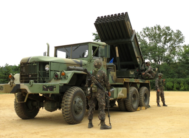 천무는 넓게 포진한 적을 단번에 휩쓸 수 있는 다연장 로켓(MLRS)이다. 여러 발의 로켓탄을 상자형의 발사대에 수납해 동시에 발사할 수 있게 만든 장치다. 차량에 싣거나 견인하기 때문에 기동성이 우수하다. 짧은 시간에 강력한 화력을 목표 지점에 집중적으로 쏟아부을 수 있다. 화력 집중을 통해 개전 초기 군사적 우위를 점할 수 있는 무기체계다.
