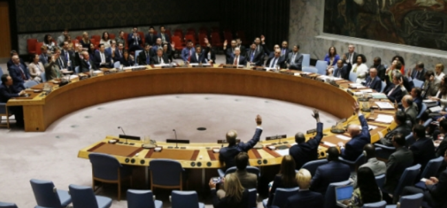 ▲ 유엔 안전보장이사회 회원국들이 11일(현지시간) 미국 뉴욕 유엔본부에서 열린 안보리 회의에서 북한의 6차 핵실험에 대응한 제재 결의 2375호 채택 표결에서 모두 손을 들어 찬성 입장을 표시하고 있다. (사진제공=유엔본부) © 세계뉴스 |