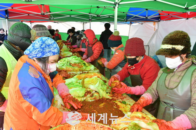 이번 행사는 지난 15일 대전면을 시작으로 여성단체협의회, 의용소방대 등 12개 읍면에서 자원봉사자 500여 명이 참여해 김치 10kg을 관내 독거노인 등 소외계층 2,500세대에 전달했다.
